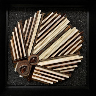 In this series, Upcycled with..., I upcycle corroded construction materials that, despite being extracted from the earth at enormous financial cost, we now consider worthless and useless, but I combine them with materials also extracted from the earth that we prize for their worth and natural beauty - stained glass (made from potash and sand), amethyst, copper, gold, jade, lapis lazuli, silver, and turquoise (mined), pearls (harvested from oysters), and amber (fossilized tree resin).